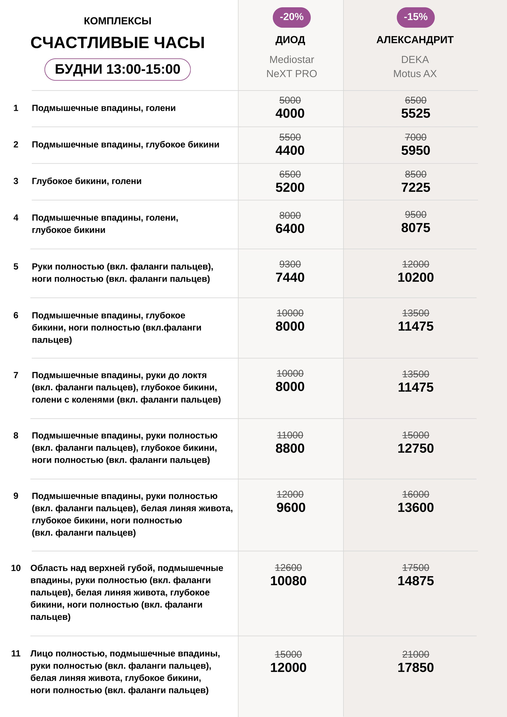 Лазерная эпиляция / комплексы счастливые часы