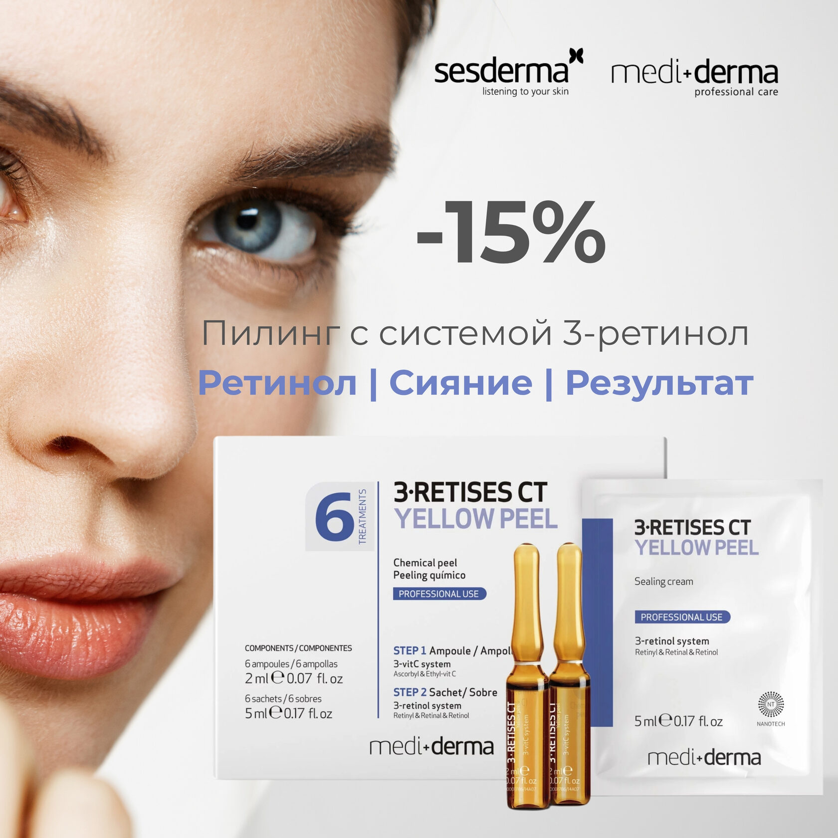 Дерматологический пилинг с системой 3-ретинол RETISES CT – Retinol Yellow Peel
